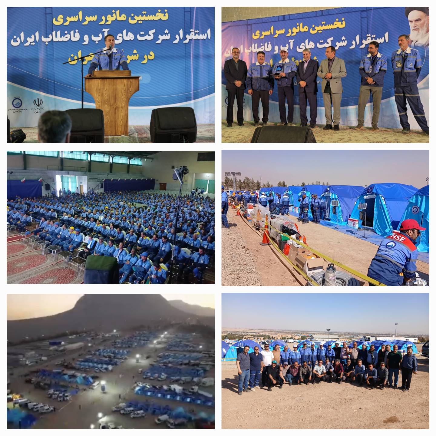 نخستین مانور ملی استقرار تیمهای واکنش سریع شرکتهای آب و فاضلاب کشور از تاریخ ۶ الی ۹ آبانماه به میزبانی شرکت آب و فاضلاب استان اصفهان و با حضور جمعی از مسئولان ارشد کشور و مدیران ارشد وزارت نیرو برگزار شد که تیم واکنش سریع شرکت آبفا فارس تصویری پر رنگ از آمادگی، اقتدار و انسجام این تیم برای مقابله با هر بحرانی را به نمایش گذاشت.