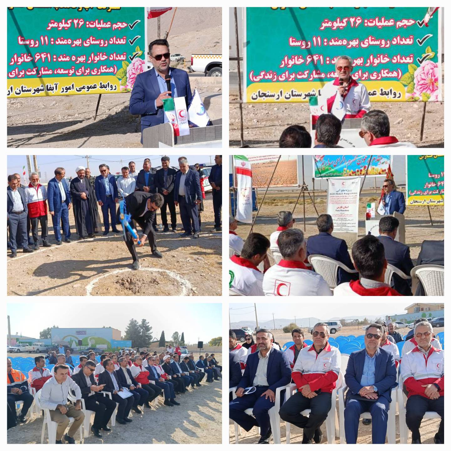 آیین کلنگزنی اجرای خط انتقال و بازسازی شبکه توزیع آب شرب در مجموعه روستاهای قدمگاه با هدف تأمین و تقویت آبرسانی به ۱۱ روستای این منطقه با حضور علی شبانی مدیر عامل شرکت آبفا استان فارس، حسین درویشی مدیر عامل جمعیت هلال احمر استان و جمعی از مسئولین محلی شهرستان ارسنجان برگزار شد.