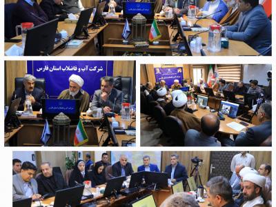 جلسه شورای فرهنگی و دینی مشترک شرکتهای آب و فاضلاب استان فارس و شیراز با حضور حجتالاسلام والمسلمین علی ابراهیمیپور مسئول شورای فرهنگی و دینی شرکت مهندسی آبفا کشور، حجتالاسلام رضایی مسئول فرهنگی وزارت نیرو در صنعت آب و برق فارس، علی شبانی مدیرعامل و رئیس شورای فرهنگی شرکت آبفا استان فارس ، بهمن بهروزی مدیر عامل و رئیس شورای فرهنگی شرکت آبفا شیراز و جمعی از اعضای شورای فرهنگی و دینی شرکتهای آبفا فارس و شیراز، به میزبانی شرکت آبفا فارس برگزار شد.